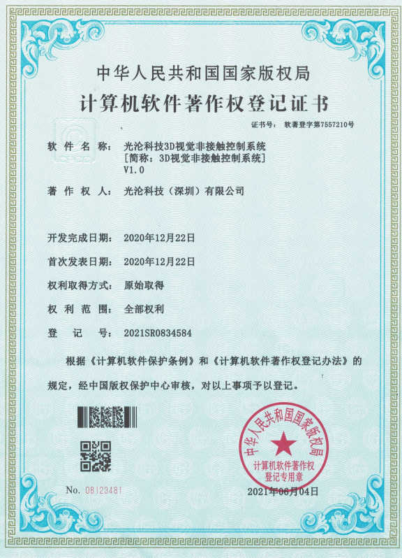 光淪科技工業機器人視覺相機獲得了多項國家專利及軟件著作權,公司自成立以來一直堅持自主知識產權研發工業3D相機!